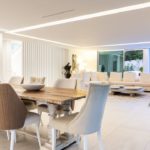 Located within the discreet and mature Fonte Algarve development north of Vale do Lobo, this villa was fully renovated in 2025. Spread over three levels, it features a bright open-plan living and dining area with fireplace and direct access to spacious terraces. The elegant fully equipped Bosch kitchen includes a butler’s pantry and enjoys hill views, with large terraces, firepit and pool outlook. This level also offers two en-suite bedrooms and a guest toilet. The first floor is dedicated to an impressive master suite with full bathroom, walk-in dressing area and private terraces. The basement provides an ideal entertainment space with TV room, two en-suite guest bedrooms, storage areas and a covered outdoor kitchen/BBQ with al-fresco dining. The landscaped garden ensures privacy and features a cascading waterfall, private driveway and excellent outdoor areas. Close to beaches, golf, restaurants and Faro Airport.