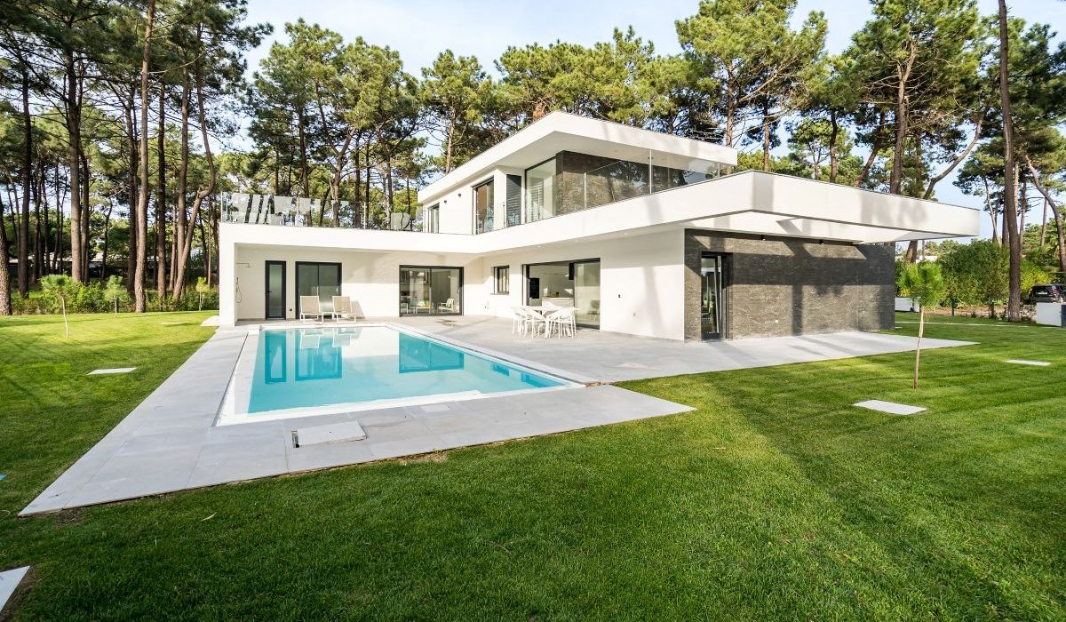 4-bedroom villa “Dance House” in Herdade da Aroeira, just minutes from the commercial area and Club House. Contemporary architecture, with abundant light and strong connection to nature. Ground floor: open-plan living and kitchen with double-height ceiling and suspended fireplace, flowing to garden and pool. Master suite (43 m²) with direct pool access. Independent T1 with suite, living room and kitchenette for guests. Guest W.C. First floor: two suites with walk-in closets and terrace access. Basement: versatile space with garage for up to 4 cars, ready for gym, cinema or games room. Outdoors: landscaped garden, infinity pool and large terraces. More than a house. A lifestyle. Ref. 10204