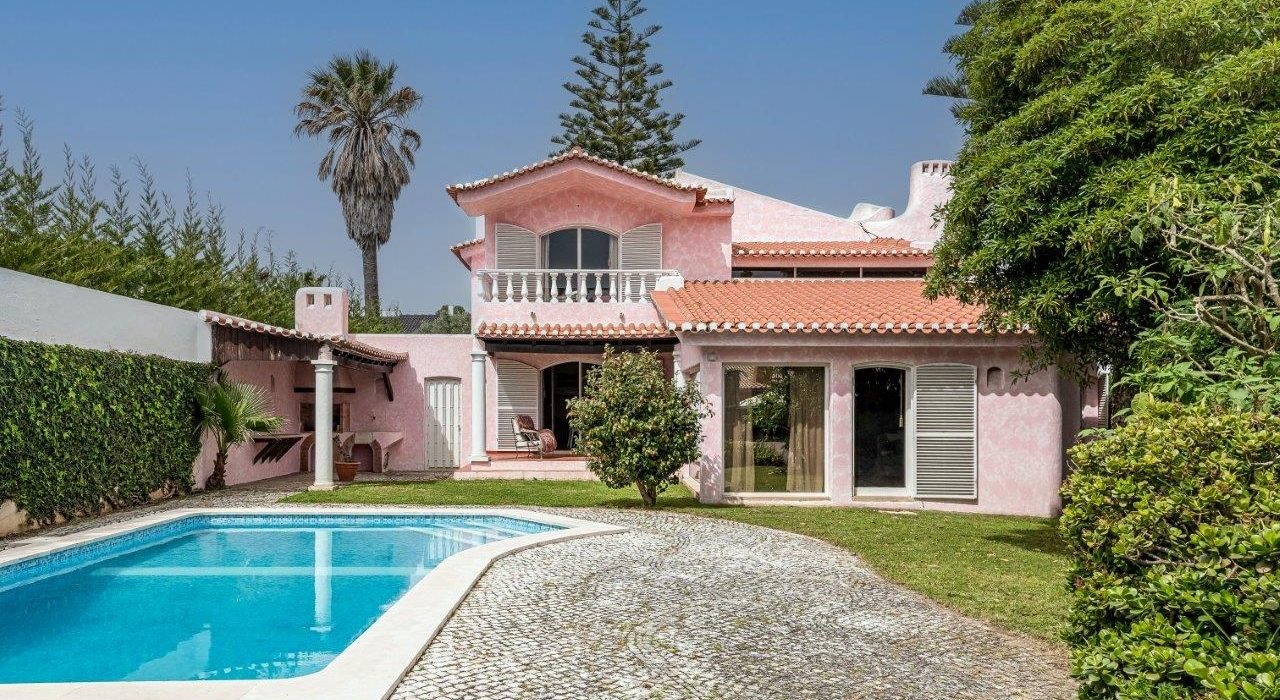 Moradia térrea exclusiva em Birre, inserida num generoso lote de 1.082m², com total privacidade e uma envolvência verdadeiramente rara. Com uma área útil de 380 m², esta propriedade destaca-se pelos seus amplos espaços interiores e ligação fluida ao exterior. A moradia dispõe de 4 quartos com roupeiros embutidos, 3 casas de banho, 2 arrecadações e uma sala generosa de 80 m², com lareira, zonas distintas de estar e refeições, e vista direta para a piscina. No exterior, a zona de lazer inclui balneários, churrasqueira e um jardim cuidado, ideal para desfrutar do clima ameno e da tranquilidade da zona. Esta é a escolha ideal para quem procura espaço, conforto e uma localização premium, a poucos minutos das praias de Cascais, com acesso imediato à A5 e todas as comodidades da linha de Cascais.